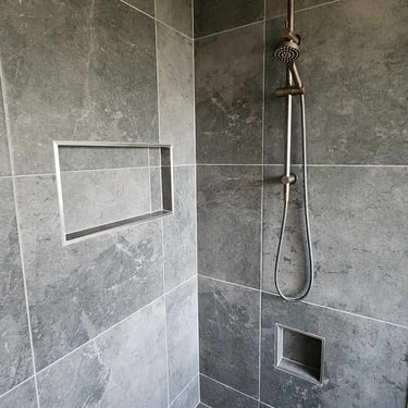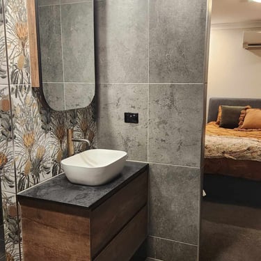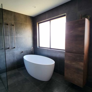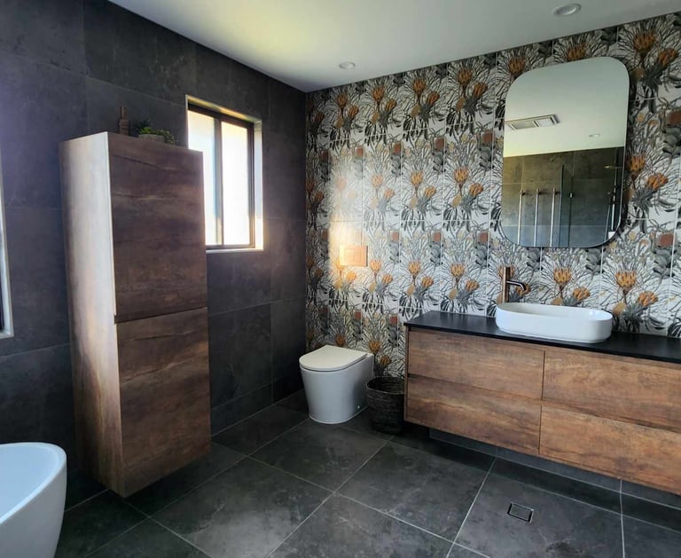 After presenting the floor plan and 3D models, we headed off on a shopping excursion to choose the tiles, vanities, fixtures, and fittings for the project. It was decided that the same tiles and fixtures would be used in both the bathroom and ensuite. The entire project has been finished recently, and the clients couldn't be happier with the outcome. However, they are still eagerly awaiting the arrival of their plantation shutters for the main bathroom.
